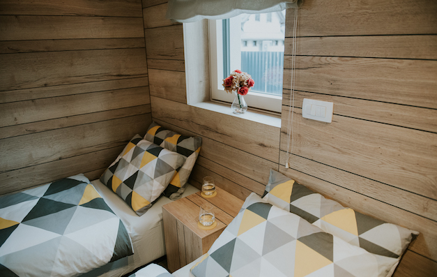 The living rooms are the ideal oasis for those who like to enjoy an afternoon rest. Furnished with a modern but rustic décor they offer warm and peaceful hideout. Technical enthusiasts will enjoy modern equipment including a smart TV, bluetooth speaker and free WiFi. The stylish couch unfolds into a bed for two.
