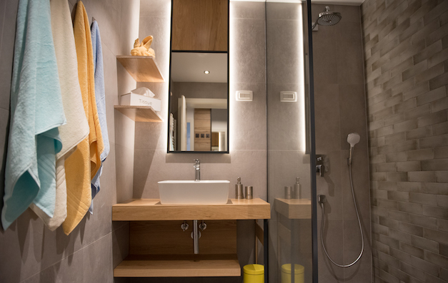 The carefully equipped bathroom offers a sense of comfort with an inviting modern shower after a tiring day of skiing. The bathroom has lots af areas where you can leave your things.