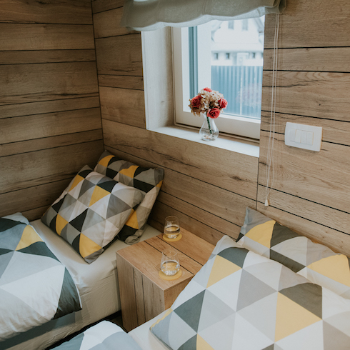 The living rooms are the ideal oasis for those who like to enjoy an afternoon rest. Furnished with a modern but rustic décor they offer warm and peaceful hideout. Technical enthusiasts will enjoy modern equipment including a smart TV, bluetooth speaker and free WiFi. The stylish couch unfolds into a bed for two.